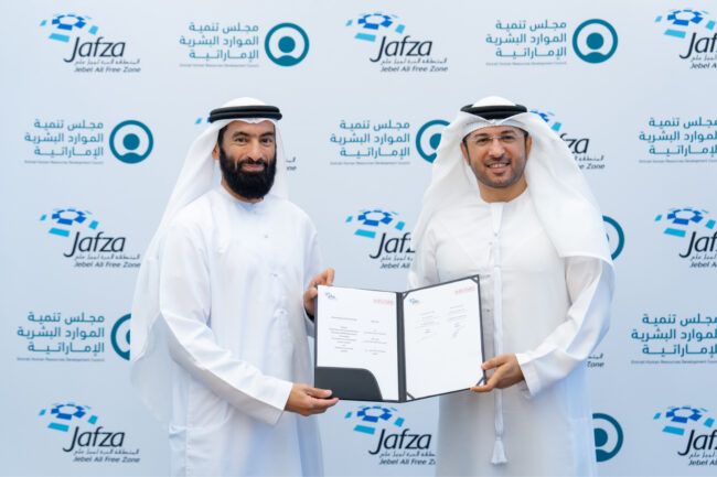 Maersk Kanoo UAE, an integrator of container logistics, today signed an agreement with DP World’s leading trade and logistics hub, Jebel Ali Free Zone (Jafza) to set up its first Warehousing & Distribution (W&D) facility in the UAE. The agreement was signed by Christopher Cook, Managing Director, Maersk UAE and Abdulla Bin Damithan, CEO & Managing Director, DP World – UAE Region & Jafza, today at Maersk West & Central Asia regional headquarter in Dubai. The 10,000 sq. mt. facility will be located within Jafza in Dubai.